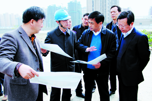 张育林一行先后来到东阳路、兴南路南侧绿地、南人工湖闸站、同德路、泰师附小东润校区、南三环安置房、文昌路西延、银杏路、根思东路等重点工程施工现场,边听取情况汇报,边察看项目建设。每到一处,张育林都详细询问项目进度、质量监理、安全管理、地下规划、园林绿化,以及存在的困难、问题等情况,并研究解决办法,部署落实措施,对各项目建设进度完成时间节点提出要求。