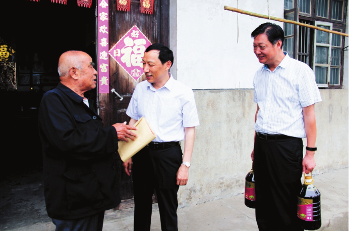 结合“两学一做”,日前,市沿江办组织全体工作人员来到挂扶村张桥镇郭桥村,开展扶贫开发活动。在上党课、重温入党誓词的同时,市沿江办分7个小组走访慰问了全村36户贫困家庭及3位老党员,给他们送去了慰问金、慰问品。记者 周冰 通讯员 张建 摄