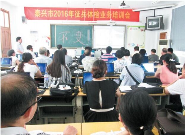 近日,我市召开2016年征兵体检业务培训会,抽调54名政治思想好、作风正、责任心强、业务精、有经验的医务人员参加征兵体检工作。今年,我市征兵体检工作首次启用征兵体检信息化管理系统。为做好近2000名应征青年的体检和信息管理,培训主要围绕该系统的使用和管理方法,以及各种检测标准和注意事项等内容展开。记者 胡新芳 特约记者 封志龙 摄