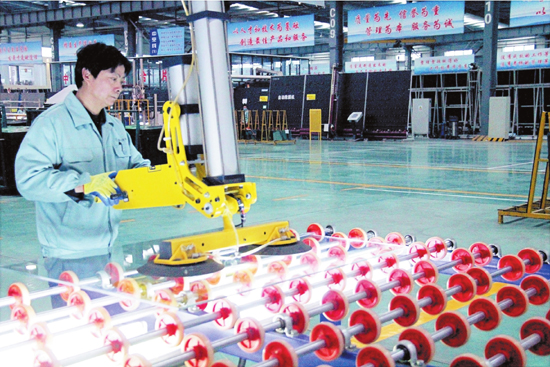 江苏福坤玻璃有限公司主动与中国矿大、上海交大、华东师大等高校科研院所合作,先后投入2000多万元,引进全自动中空生产线、兰迪双室对流钢化炉、意大利进口保特罗切割机等先进设备,先后成功开发了中空玻璃、彩釉玻璃、镀膜玻璃等新产品,资产规模和生产能力在苏中地区首屈一指,今年公司销售目标预计超亿元。记者 周冰 摄
