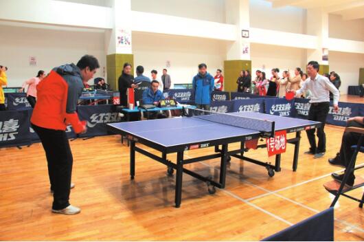 10月29日上午,市国土局举办第二届“国土资源杯”职工运动会,活跃和丰富了全系统广大干部职工的文体生活,营造了积极向上、团结和谐的工作氛围,149人次参赛。比赛项目既有传统的乒乓球、羽毛球等健身项目,还增加了袋鼠跳、二龙戏珠、摸石过河等趣味比赛项目。图为乒乓球比赛现场。