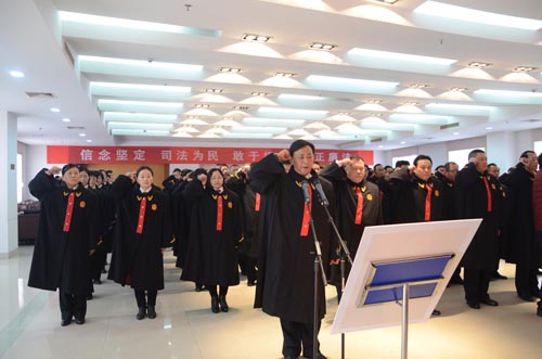 (记者 祝朝晖)元月3日,泰兴市人民法院举行入额法官宪法宣誓仪式。在院党组书记、院长杨旭波的带领下,全体入额法官面向国旗庄严地举起右拳,用铮铮誓言做出人民法官的庄严承诺。 该院自司法改革法官入额工作启动以来,经过报名、资格审查、考核、考察、审议、公示等程序,严格遴选入额法官,最终经省高院确定该院62名具有较高的法律素养、审判工作经验和履职能力较强的法官首批入额。