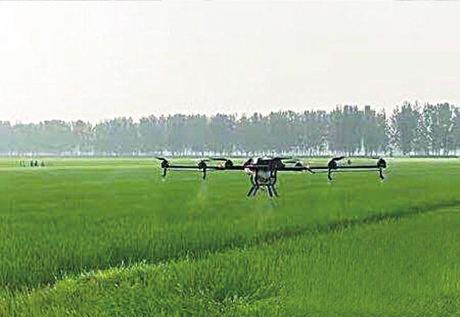 近日,在滨江镇的一户家庭农场的农田里,一台新型无人喷药机正均匀地对麦田喷洒药物,吸引了众多家庭农场主的眼球。据了解,这台新型无人喷药机是江苏大成航空科技有限公司新近推出的产品,机身上面安装了四根喷柱,可以增加一次性用药面积,按照操作人员的要求将农药喷洒到指定地点,而且载重量达到10公斤,提高了喷施农药的效率。
