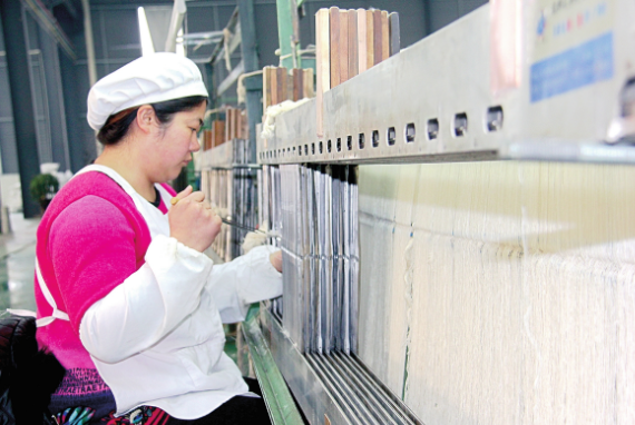 江苏泰通保利实业有限公司羊绒织布项目由江苏迪奥实业有限公司投资建设,项目总投资3000万元。该项目预计2017年完成国税开票销售3000万元,2018年全面达产达效后,年可实现国税开票销售5000万元、利税450万元。记者 蒋凯 摄