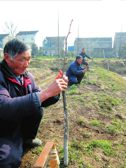 日前,在虹桥镇三香果业生产基地,工人正在嫁接良种果树翠冠李。翠冠李三年挂果,四年进入盛果期,果大、皮薄、肉白,口感好,营养丰富,市场需求旺盛,亩年收益逾万元,三香果业生产基地成功引种400亩。近年来,翠冠李、猕猴桃、水蜜桃等优质水果发展迅速,全市栽植面积已达4000多亩,成为果农增收的亮点。特约记者 蔡文 通讯员 王建富 摄