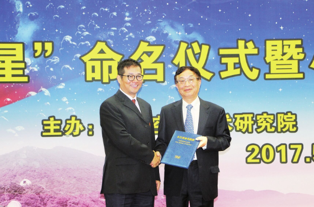 (记者 蒋凯)5月8日,在中国空间技术研究院举办的“叶培建星”命名仪式暨小行星探测学术报告会上,泰兴籍中国科学院院士、嫦娥一号卫星系统总指挥兼总设计师叶培建接过了“叶培建星”铜匾和证书,正式获得永久性小行星命名。 国际编号为456677的“叶培建星”是在火星和木星轨道之间绕太阳运行的一颗小行星。2007年9月11日,它被中国科学院紫金山天文台首先发现。按国际惯例,中国科学院紫金山天文台享有这颗星的命名权。 为了表彰我国著名空间飞行器总体、信息处理专家叶培建对推动我国卫星遥感、月球与深空探测及空间科学快速发展所做出的突出贡献,2016年6月,中国科学院紫金山天文台推荐命名“叶培建星”,2017年1月12日获国际小行星命名委员会批准。2017年1月22日,市委市政府向中国空间技术研究院及叶培建院士发去贺电,衷心祝愿(456677)“叶培建星”永远闪耀在宇宙星空之中。 据了解,“叶培建星”轨道半长径为2.43个天文单位,到太阳的平均距离是3.64亿公里,绕太阳一周需要3.79年。 面对荣耀与掌声,叶培建说:“这次小行星命名不仅是我个人的荣誉,也体现了对中国空间技术研究院和国家航天事业的肯定。我们深空探测团队共同的目标是在火星探测之后瞄准小行星探测,向更远的太空进发。我们将珍惜荣誉,不忘初心,不辱使命,争取在探索太空的征程中再有所贡献。” 以“叶培建星”命名仪式为契机,我国小行星探测领域的专家、学者齐聚一堂交流研讨。叶培建作了题为“小天体探测面临的技术挑战”的报告,围绕小天体探测“选、探、控、用”四个方面,梳理了涉及的主要技术问题与内涵。“随着嫦娥五号探测器、火星探测器等深空探测任务的实施,我国小行星探测的步伐将进一步加快。”叶培建说。 泰兴籍暗物质粒子探测卫星首席科学家、中国科学院紫金山天文台副台长常进主持“叶培建星”命名仪式。 |