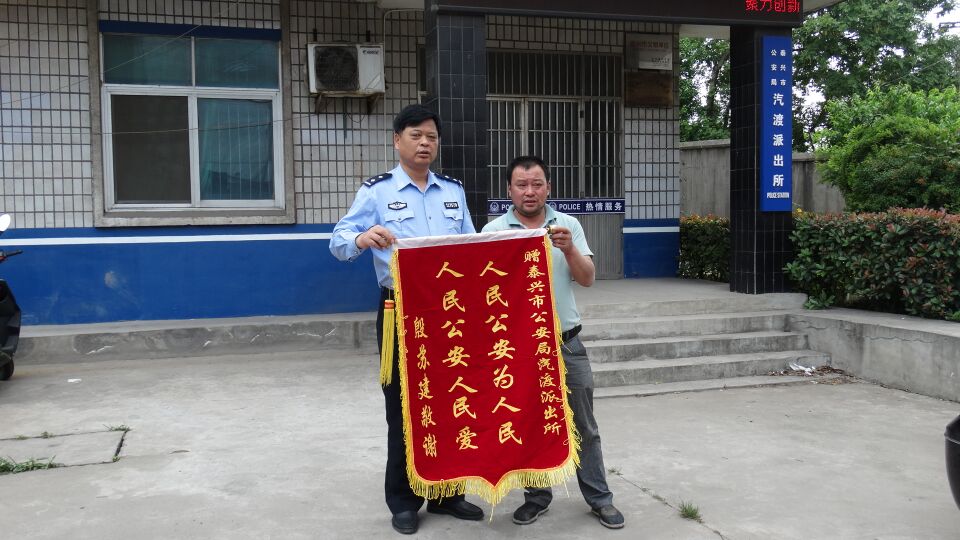 (记者 周冰 通讯员 叶志平)日前,黄桥镇居民殷苏建向汽渡派出所赠送了一面书有“人民公安为人民,人民公安人民爱”的锦旗,感谢派出所民警的热心帮助,使其遗失的笔记本电脑失而复得。