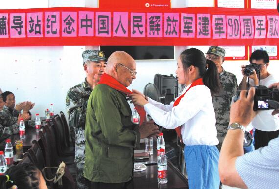 为热烈庆祝中国人民解放军建军90周年,我市不少乡镇、部门邀请革命老战士讲授革命故事,开展红色教育。图为市司法局邀请参加抗美援朝战争的老战士雍德元,到张桥镇留守儿童法治驿站讲述战斗故事。