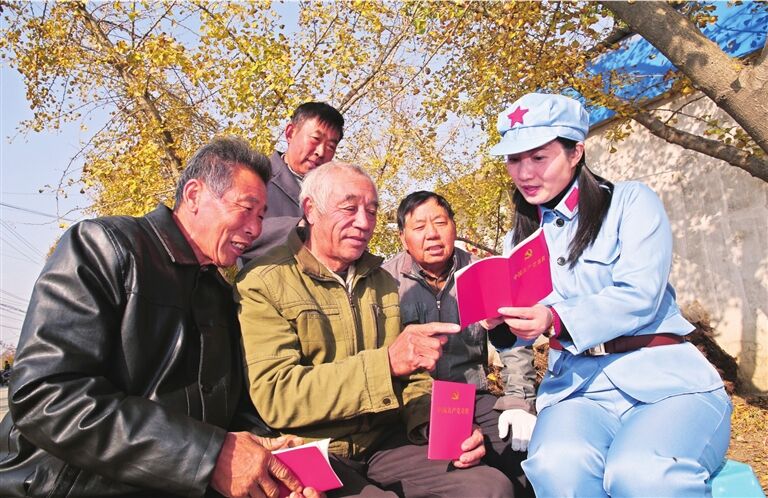 紧扣十九大精神宣讲 冬日的阳光伴着飘舞的银杏叶,简陋的舞台上人们穿梭忙碌着,虽然条件略显艰苦,但大家的工作热情丝毫没有减少。 九点钟,“泰兴广电主播诵读十九大”活动正式开始,由广播电台的主持人们自编自导自演的《诵读十九大报告》节目拉开了演出的序幕。节目选取“十九大报告中与农村百姓生产生活相关的内容,原文朗诵,原汁原味。村民们也结合自身所学所感,说出了老百姓对新时代新征程的美好憧憬。 ——“中国特色社会主义进入新时代,我们的党一定要有新气象、新作为,全面推进党的政治、思想、组织、作风、纪律建设,那新时代我们党要把什么建设摆在首位呢?” ——“党的政治建设” 活动还设置了互动问答环节,现场观众在紧张而充满乐趣的互动抢答中学习知识、了解政策。 观看完整场宣讲的宣堡镇银杏村村民李留贯说:“泰兴广电主播走进我们基层农村,通过通俗易懂的形式,让我们老百姓能够学深学透十九大报告精神,我们希望多举行这样的活动,既丰富我们的生活,又能让我们学好党的政策。” 倾情演出激发群众奋斗热情 形式多样的文艺演出赢得了现场观众阵阵掌声。诵读活动中,句句唱词都源自十九大报告,个个都有具体内容指向,并通过歌舞、朗诵、合唱等多种艺术形式来呈现,让现场观众直呼过瘾,也激发了村民们努力奋斗的决心。 宣堡镇银杏村党总支副书记沈亚军表示:“十九大报告把乡村振兴提到了一个战略高度,为我们农村的发展指明了方向。通过学习十九大报告,结合我们村的实际情况,我们利用已经成立的三个合作社,发展电商平台,结合特色田园乡村建设,真正使老百姓富起来,村集体经济强起来,让我们的乡村变得更加美好,把十九大精神落到实处。” 十九大胜利召开以来,市广播电视台突出创新形式,注重实际效果,通过策划组织群众喜闻乐见的文化活动,推动党的十九大精神进企业、进农村,深入浅出、潜移默化地宣传党的十九大精神,使党的十九大精神家喻户晓、深入人心。 “泰兴广播电视台在本土有宣传优势,主持人主播诵读十九大,是有魅力和吸引力的。” 市广播电视台党委副书记曹爱民表示,本次活动利用主持人主播的品牌优势,与老百姓面对面,零距离宣讲十九大精神,更能让老百姓看得懂、听得懂,喜欢听、喜欢看。 |