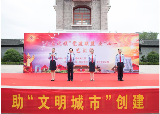 为庆祝中国共产党建党 97周年,6月27日上午,市级机关工委联合税务、财政和审计等部门,举行 了“鑫泰之旗” 机关党建联盟专场文艺演出。各机关部门结合各自工作的特点,自编自导自演了十多个精彩纷呈的节目, 通过朗诵、讲叙、演唱和舞蹈等形式共同回顾事业发展的历程,饱含深情地歌颂党感恩党。精彩而接地气的内容和表演赢得了阵阵掌声,激发了大家爱党爱国的热情。