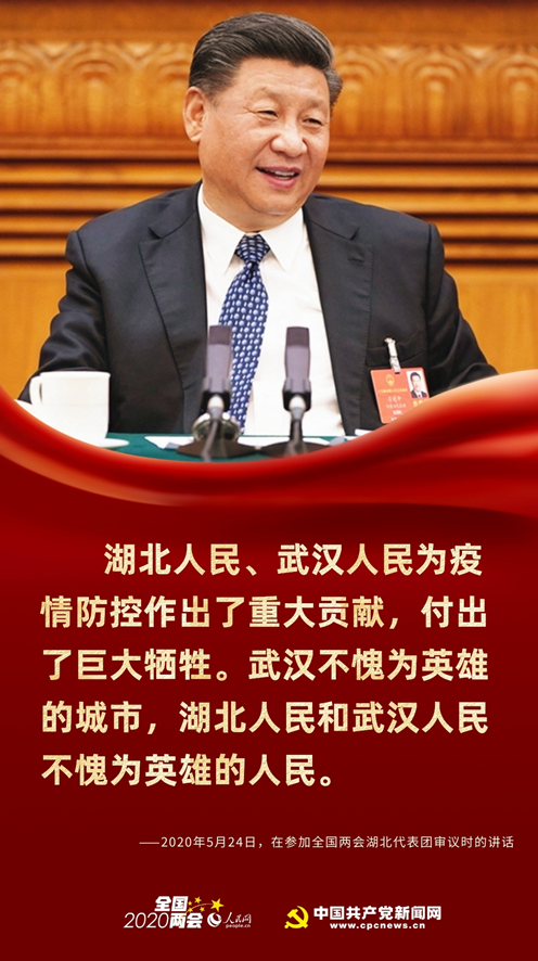 5月24日,习近平今年两会第三次“下团组”来到了湖北代表团。 今年两会因疫情原因压缩了日程,每位中央领导“下团组”的次数也随之减少。而参加湖北代表团审议,是习近平总书记特意提出的。 “我提出,湖北代表团一定得来一下。你们是湖北6000万人民的代表,我要看望一下大家。” 荆楚大地,有着习近平深深的牵挂。 两个月前,在抗击新冠肺炎疫情的关键时刻,习近平专门赴湖北省武汉市考察疫情防控工作。在经历顽强奋斗和巨大牺牲后,中国有效遏制了病毒传播。 两个月后,在人民大会堂,习近平又对湖北代表们留下哪些叮嘱? “湖北人民和武汉人民不愧为英雄的人民”