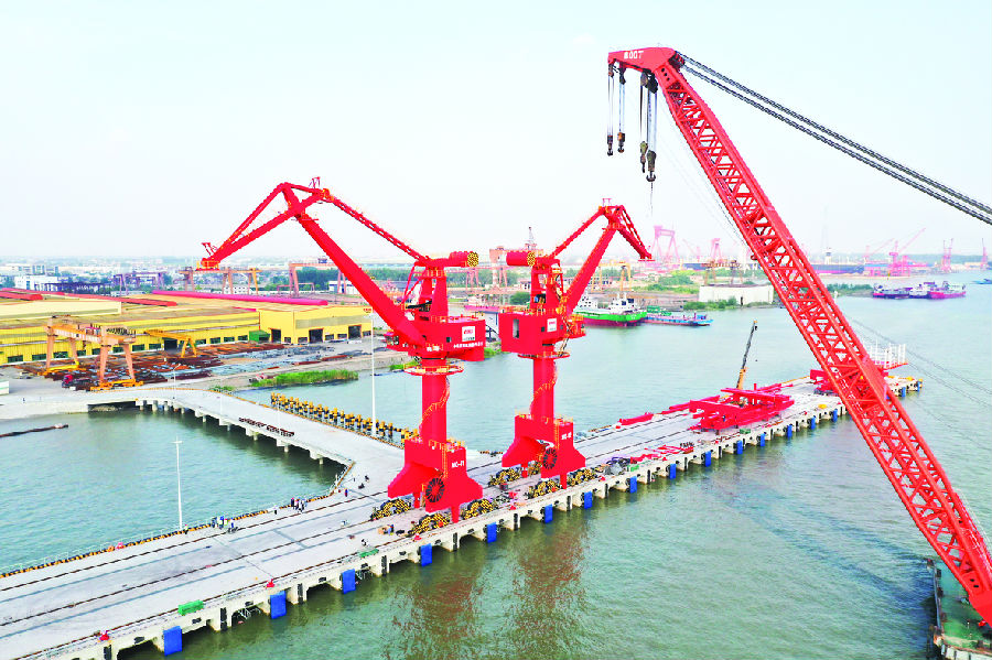 6月4日,由中铁建港航局泰兴港务有限公司投资建设运营的泰兴港区七圩公用码头门机设备安装圆满完成,码头现场亮出红色风景线。该码头作为中国铁建首个自主建设运营的码头,开港运营后将充分发挥中国铁建品牌优势,融入“长江经济带”及“长三角经济圈”国家战略,整合长三角特别是锡常泰货物资源,实现江海大联运,让黄金岸线在保护性开发中实现“黄金效益”,助力地方经济跨越发展。