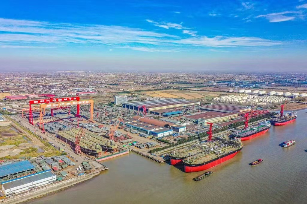 面对新冠疫情的冲击和国际航运市场的深刻变化,作为全国最大民营造船基地、国家级船舶出口基地的江苏省靖江市积极引导造船企业逆势而上促生产、快人一拍谋发展,推动造船产业乘风破浪、行稳致远。 迎难而上奋力争订单保交船 走进江苏新时代造船有限公司,处处可见热火朝天的生产景象。在抓好疫情防控工作的基础上,企业铆足干劲,着力推进生产建造,力保订单交付,连日来顺利完成210000吨散货船、156500吨油船等多艘船舶的关键生产节点。“今年我们的接单量特别在双燃料船接单方面成果喜人,已经提前完成全年的接单任务,在手订单87艘,载重吨约1120万吨,排产到了2026年。”企业营销部部长陈亚军表示,双燃料船订单主要集中在210000吨散货轮,8000TEU和11400TEU集装箱船。