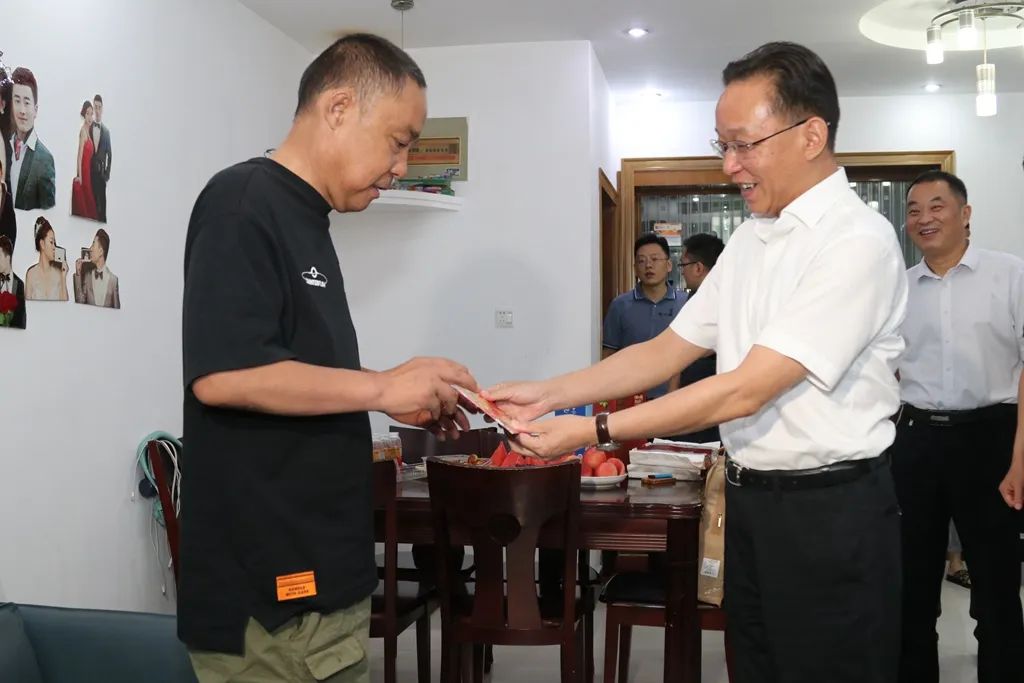 在中国人民解放军建军95周年之际,7月26日,市委书记张坤走访慰问优抚对象,代表市委、市政府送去党的关心和关爱,让他们共享改革发展成果。市委常委、政法委书记王建武参加。 一级视力伤残军人曹明建今年56岁,患尿毒症,常年透析治疗。张坤关切地询问了他的身体情况、家庭成员、子女就业、收入来源以及政策保障落实等情况,并送上了慰问金,叮嘱他一定要保重身体,坚强面对生活。 张坤指出,各级党委、政府和有关部门要切实关心关爱优抚对象,不折不扣把各项优抚政策落实到位,为他们提供细致周到的服务,积极帮助他们解决好生活中的实际困难和问题,不断提高服务保障水平,让他们充分感受到党和政府的关怀与温暖。 今年58岁的陈同山为一级伤残军人,家中还有一位82岁的老母亲。张坤来到老人家中,关切询问家庭生活和身体情况,感谢他曾经为党和人民作出的贡献,并送上节日祝福以及慰问金,同时叮嘱街道及社区工作人员,要及时帮助生活困难退伍军人解决实际困难,以更贴心的服务做好拥军优属工作,使他们更多地享受经济社会发展的成果,切实增强退役军人的荣誉感、归属感、获得感。 为加深军民鱼水情,切实让烈士遗属们感受到党和政府的关爱,在“八一”建军节来临之际,7月27日,市委副书记、市长刘文荣来到姚王街道,走访慰问部分烈属,表达对烈士的崇高敬意和对烈属的关爱之情。 作为烈属,今年99岁高龄的翟和英老人无儿无女,在街道的帮助下,不仅可以在亲戚家居住,也可来到养老院安度晚年。刘文荣与其亲属深入交谈,了解老人饮食起居和健康情况。 刘文荣指出,革命烈士为革命事业所作出的贡献和牺牲,党和政府会永远铭记,更不会忘记革命烈士家属。亲属要用真心真情细心照料烈属的饮食起居,切实关注烈属的身体健康和精神生活,让其享有更高质量的晚年生活。街道也要落实好各项优抚政策,多为烈属办实事、办好事,解决后顾之忧,真正把党和政府的温暖关怀落到实处。 “最近身体怎么样?生活上有什么困难?”在92岁高龄的烈属赵爱仙家中,刘文荣与其叙家常、问冷暖,对革命烈士为党和国家的无私奉献表示钦佩,对烈属表示慰问,并倾听烈属诉求,了解烈属的家庭生活、身体健康以及抚恤政策落实等情况,嘱咐老人保重身体,并表示党和政府会一如既往地给予关心和帮助。各相关单位要关心关爱烈士遗属,常上门看看、照顾好烈士遗属生活,让他们切身感受到党和政府的温暖,更好地倡导和弘扬烈士精神。 |