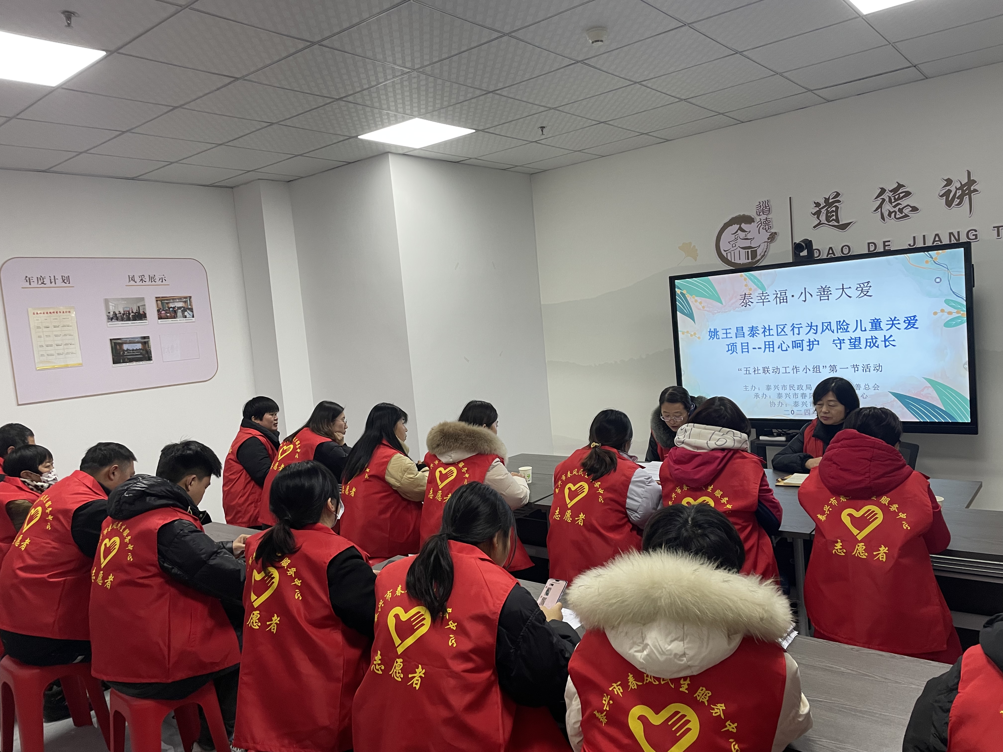 近日,由市民政局、市慈善总会主办,市春风民生服务中心承办的“泰幸福 小善大爱”“情暖夕阳 乐享生活”“用心呵护 守望成长”公益创投项目招募志愿者培训活动在姚王街道安泰社区、昌泰社区举行。该活动主题为“志在 爱在 我们在”,旨在为志愿者提供基本知识的培训,提升他们对志愿者、志愿服务的认识和相关能力。 活动开始,市春风民生服务中心负责人向志愿者介绍中心概况、经营范围。项目业务负责人向志愿者概述项目背景和目标、实施过程,强调该项目对于推动社区发展和改善民生的重要意义。