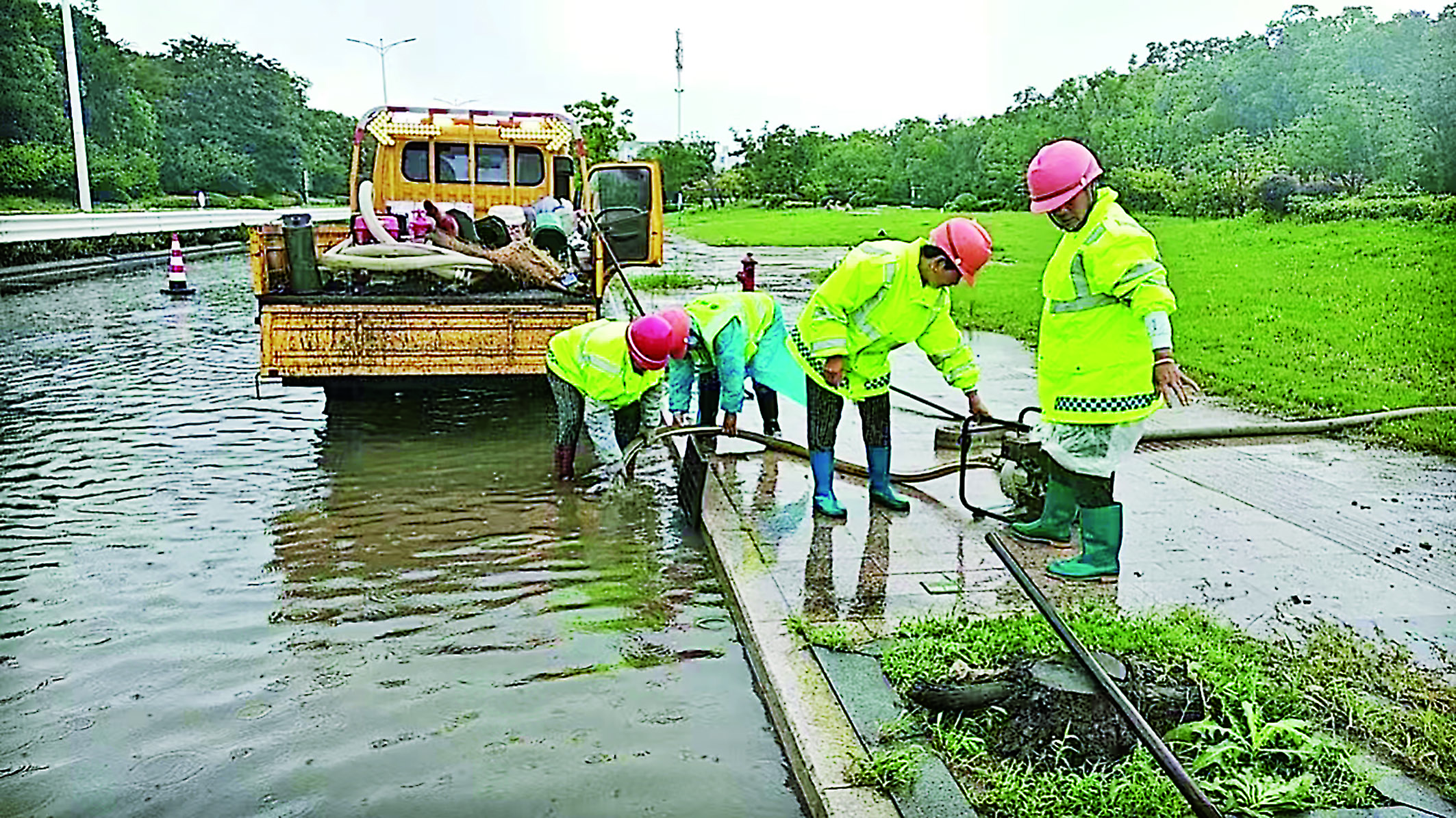 自7月9日晚开始,泰州市经历了一轮强降雨,局地特大暴雨。泰州市启动防汛IV级应急响应,各地各单位积极行动,共同筑牢防汛防线。强降雨期间,主城区地道桥、路段均正常通行,没有出现严重积水现象,道路通行通畅,城市交通秩序井然。 巡查、排险全覆盖 强降雨期间,泰州市公路事业发展中心通过视频监控+人工巡查相结合的方式,加大对821公里普通国省道和74公里快速路的巡查频次。路网中心每2小时完成一次全覆盖视频巡查,16支公路应急处置队伍24小时在岗值守,对辖区公路进行全覆盖不间断动态巡检、处置。截至记者发稿时,共出动人员156人次,巡查车170车时,机械设备2台次,处置排水作业11起,完成处置11起。全市66处易积水点位、3座隧道、6处下穿均无积水,通行正常。 清理雨水井口杂物