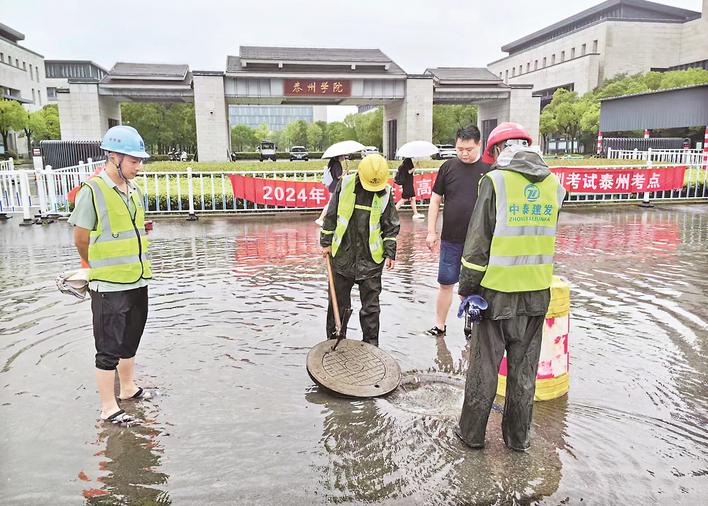 泰州水利部门积极调度水利工程体系,充分发挥工程的防洪减灾效益。市防指联合调度通南地区255座水利工程,调度目前长江唯一具备抢排条件的夏仕港闸持续全力抢潮排水,41座老328国道流域控制性工程保持最大程度下泄,全力降低河湖水位。10日,中心城区、通南地区分别预降水位至2.1米、2.4米。市水利部门同时开启中心城区全部外排通道,并于当日上午开启明珠水利枢纽抽排,全力抽排城区涝水。 汛期来临,长江防洪工作是重中之重。目前,泰州市沿江地区投入1678人,对长江堤防进行24小时全覆盖巡查。市防指派出3个工作组,持续下沉督导沿江市(区)做好长江巡堤查险和应急处置工作。目前共前置抢险人员368人,机械13台,沙袋13100只,土工布8550平方米,块石220吨。 严格管控易积水区域 为应对本次强降雨,泰州客运集团周密部署,全员奋战防汛一线。截至记者发稿,泰州公交89条线路、市区各汽车客运站44条客运班线以及高港汽渡均正常运营。