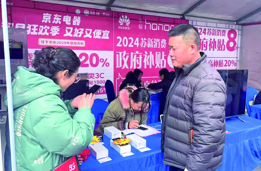 “‘国补’政策实行以来,我们持续加大这项惠民政策的宣传力度,进一步促进消费市场的热度,为全市经济发展注入强劲动力。”活动现场,中国电信泰兴分公司工作人员张奕介绍,“国补”政策出台以来,中国电信泰兴分公司抓住一揽子增量政策的窗口期机遇期,坚持“政策+活动”双轮驱动,通过发放消费券、财政补贴、组织开展促消费活动等措施,把促消费和惠民生结合起来,收到较好市场成效。 智能家电普及率稳步提升,诸多亮点折射消费市场的活力。在城区一家京东家电卖场,“家电”国补的标语随处可见,在政府促消费政策的支持下,前来购买家电的居民络绎不绝。市民余海波正在为新家选购空调,国补如同及时雨,为他选购家电提供了便利。他告诉记者,家里要安装的空调以前售价8100元左右,现在有了政府补贴加上平台优惠,到手价仅6500元左右,这让他非常开心。 国补政策的实施,直接降低了消费者的购买成本,释放了居民消费潜力。据介绍,“国补”家电在银联云闪付上领品类券后,核销支付时立减,一级能效产品补贴20%,二级能效补贴15%。 据悉,为让这项“国补”政策真正惠及群众,连日来,中国电信泰兴分公司、京东家电等商家,通过印制宣传册、展板等方式,组织工作人员深入乡镇、村社及人流密集区开展宣传活动,多种形式加强政策的宣传力度,提高群众对这项惠民政策的知晓率。