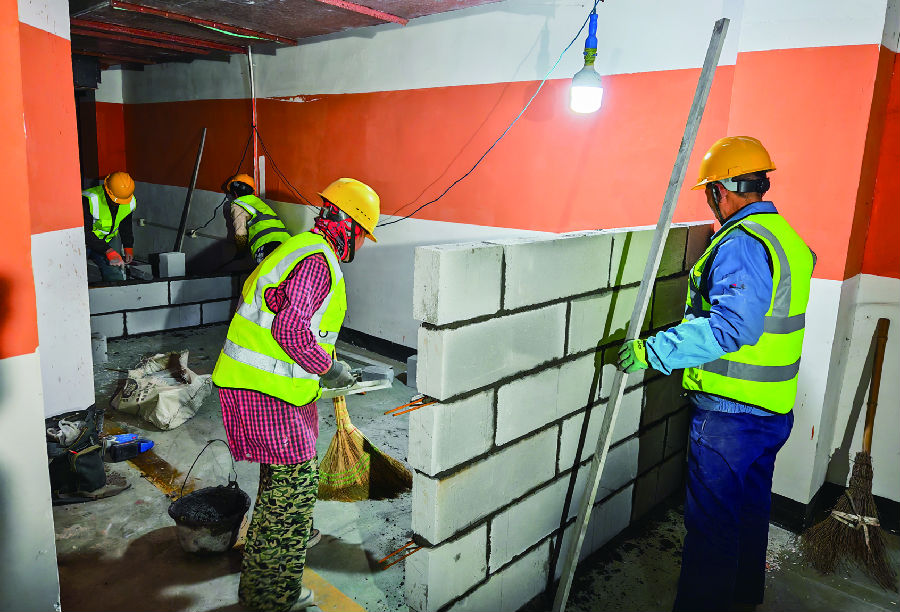 为筑牢住宅小区安全“防火墙”,今年年初,市住建局、市集建公司启动了城区居民住宅小区地下非机动车停车库改造项目,对宝格丽,金科集美雅苑,皇家水岸2期、4期,佳源威尼斯·西岱宫、凯旋宫、波旁宫,恒大悦府,金凤商城等13个小区、40个地下非机动车停车库进行改造。在砌筑防火隔墙的同时,还将施划地面停车标线,规范车辆停放秩序。图为锦绣华府小区地下非机动车停车库,施工人员正在砌筑防火隔墙。