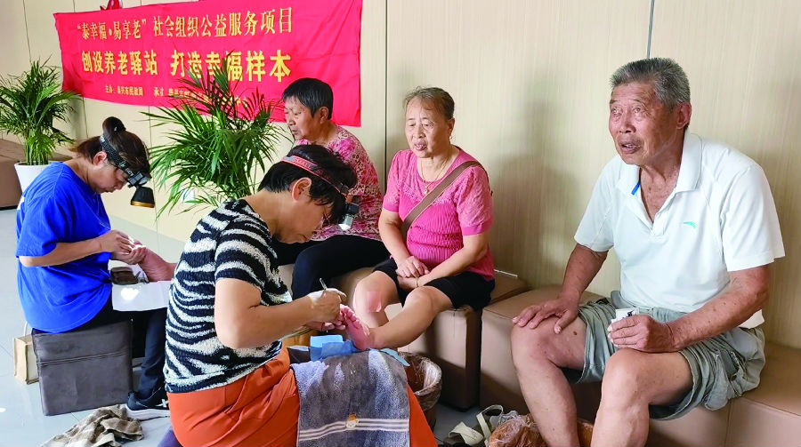 7月21日上午,虹桥镇广福村幸福养老服务驿站开展庆“八一”专场服务,志愿者为30多名退役老兵和家属义务理发、泡脚修脚,同时送上建军节的尊崇和祝福。 面对着历经沧桑、风雨洗礼的老兵,负责理发的志愿者细心地推剪修饰,努力为每个老人修剪出满意的发型;负责泡脚修脚的志愿者贴心地询问老人水温情况,不厌其烦地为老人修脚刮脚;虹润社工和虹桥镇民政服务站以及广福村志愿者忙着引导其他老人开展棋牌活动,等候志愿者理发和泡脚服务。年过七旬的老兵朱绪林高兴地说,幸福养老服务驿站已经不止一次开展类似的服务活动,这次主要以退役老兵为服务对象,有效解决了老人自我护理难题,让大家清清爽爽过夏天,这样的服务接地气、暖人心。 幸福养老服务驿站是“泰幸福·易享老”社会组织公益服务项目之一,主要服务对象为虹桥镇广福村的老年人群体。负责该项目实施的虹润江城社工服务中心负责人介绍,围绕庆“八一”主题,幸福养老服务驿站已经开展了一次“送清凉”活动,为广福村30多名退役老兵分别送去了翠冠梨。 更让老兵们开心的是,为配合幸福养老服务驿站项目实施,广福村“两委”负责实施的居家养老服务中心提档升级工程已经交付使用,不仅建成了宽敞明亮的休闲活动大厅,还新增了心理咨询、日间照护、助餐聚餐、文体健身功能板块,成为全村老人休闲娱乐好去处。 |
