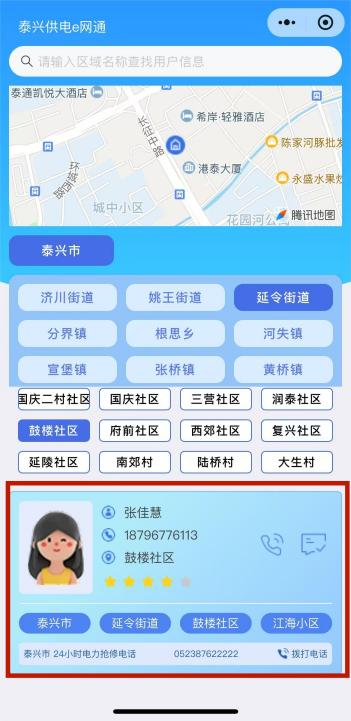 使用【泰兴供电服务e网通】小程序 快速定位您的专属电力网格经理 用电问题一键直呼,高效解决!