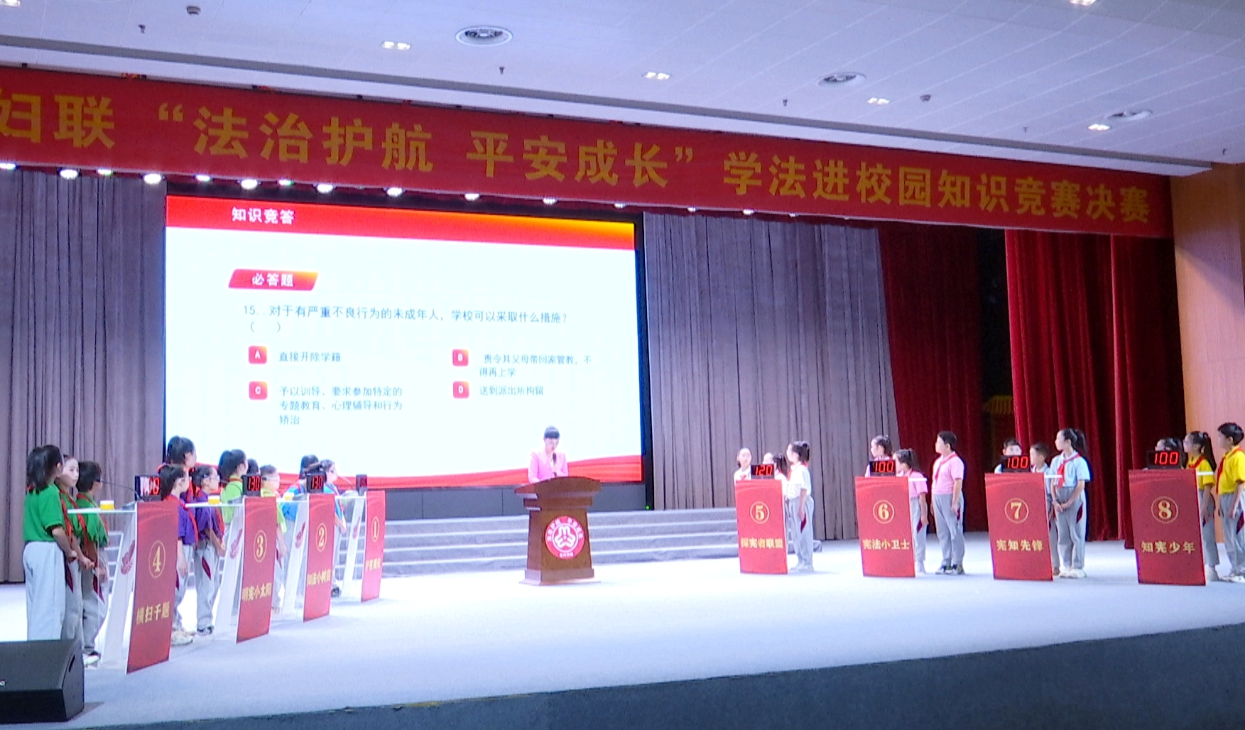 10月27日,市妇联在襟江小学教育集团镇海校区开展“法治护航 平安成长”学法进校园知识竞赛。 此次竞赛共有镇海校区8支代表队晋级决赛,每支队伍由3名学生组成。竞赛采用现场小组答题模式,设置必答题、抢答题、风险题三个环节,内容聚焦未成年人法治教育重点领域,涵盖《中华人民共和国宪法》《中华人民共和国民法典》《中华人民共和国预防未成年人犯罪法》《中华人民共和国未成年人保护法》《中华人民共和国反家庭暴力法》《中华人民共和国家庭教育促进法》等法律法规,同时涉及网络安全、交通安全、禁毒、防范欺凌等与未成年人生活密切相关的安全知识。通过竞赛进一步提升未成年人的法治观念和法律素养,强化其自我保护意识与能力,同时推动形成全社会关心、关爱未成年人健康成长的良好法治环境。 |