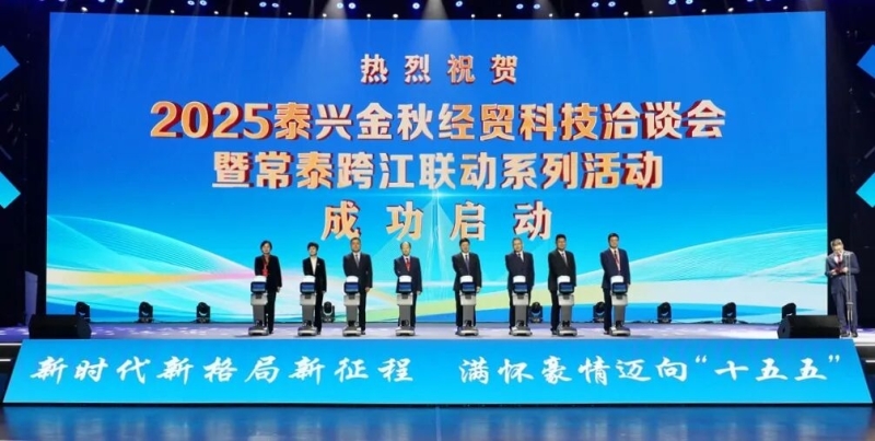 与会领导共同按键启动2025泰兴金秋经贸科技洽谈会暨常泰跨江联动系列活动。 |