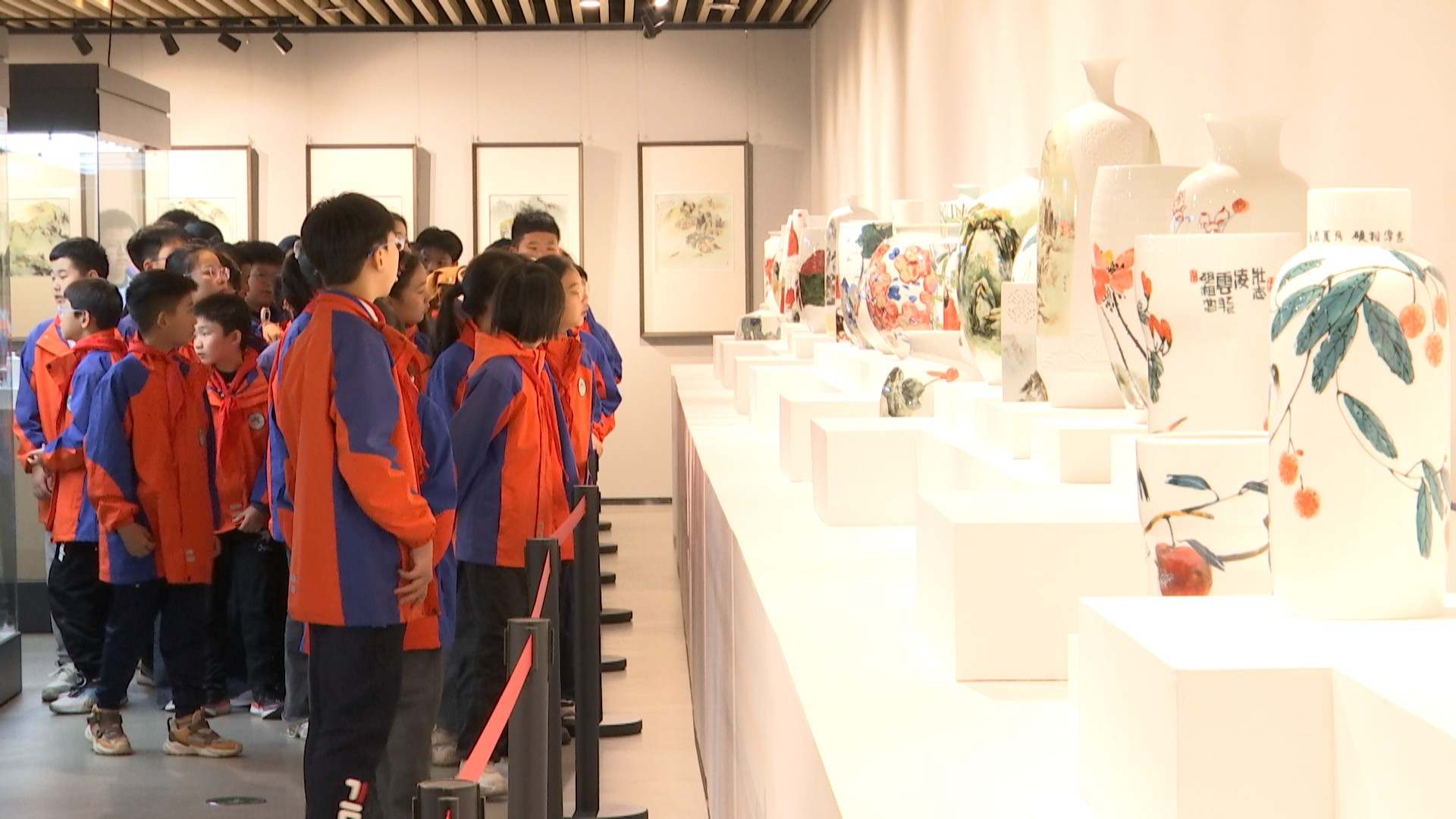 “我感觉这些作品栩栩如生,尤其是李砚祖教授创作的那套泰兴主题茶具,特别生动有趣,上面画的银杏叶活灵活现。”泰师附小教育集团东润分校学生杨易坤分享观展感受。学生殷梓钰则有别样收获:“李砚祖教授年事已高,还一直在坚持做陶瓷,特别让人敬佩。我学习钢琴,虽然一直在练习,但有时候会想放弃,以后我也要像他一样坚持下去。”