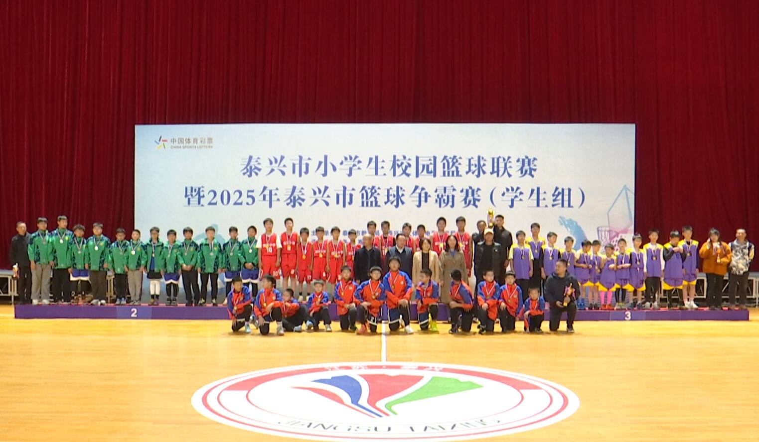 11月12日,全市小学生校园篮球联赛暨2025年泰兴市篮球争霸赛(学生组)冠亚军决赛精彩上演,对阵双方为襟江小学代表队与鼓楼小学代表队。