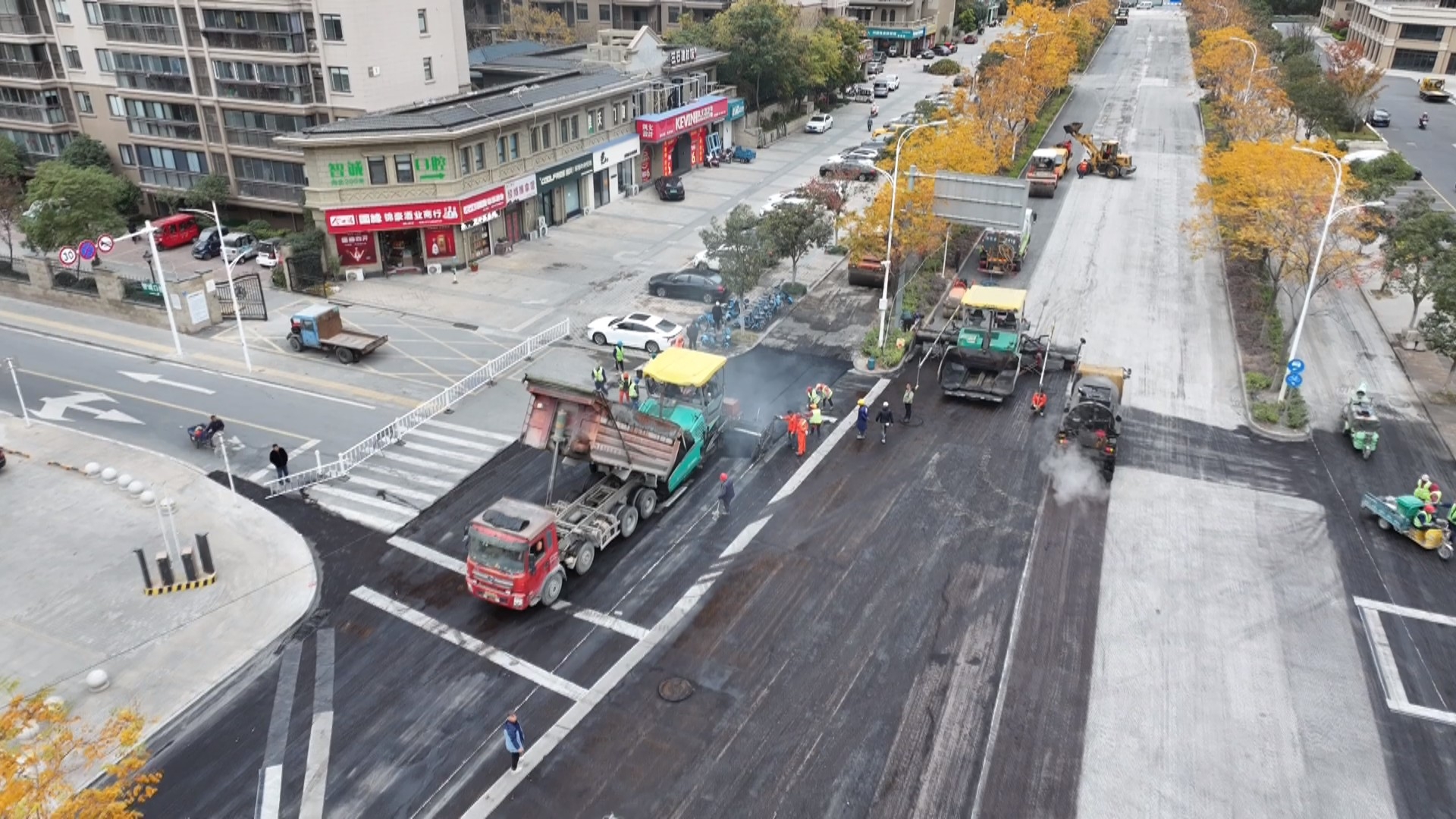 经过前期紧张施工,城区鼓楼南北路、鼓楼东西路污水管网改造工程已进入扫尾阶段。项目建成后,将有效提升区域雨污分流效率,进一步守护城市生态底色。 12月3日上午,鼓楼南北路(银杏路至阳江路段)污水管网改造项目现场,施工人员正忙着摊铺机动车道及非机动车道上面层沥青。据悉,该路段原有地下污水管道破损严重,影响污水收集处理。此次改造中,施工人员在西侧机动车道内新建长约760米的球墨铸铁污水主管,并对原有雨水管道进行疏通,成功实现雨污分流。“沥青摊铺计划两天内完成,之后将开展标线施划、护栏安装工作。”项目技术员黄卿介绍。 另一条改造路段为鼓楼东西路(万桥路至济川路段),该路段长约424米、路宽26米,过去存在地下管网雨污合流问题,不利于污水收集处理。此次改造铺设了一道直径400毫米的球墨铸铁污水管和一道直径600毫米的球墨铸铁雨水管,同时同步实施路面沥青摊铺,以及电力、通信、照明、绿化及交安设施等附属工程。“下一步,我们将重点推进雨水出水口管道施工和人行道改造,计划12月中下旬完成沥青上面层摊铺。”项目技术负责人陈鸣表示。