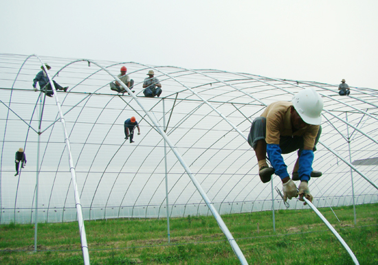 架设中的曲霞钢架大棚 (特约记者 叶余华 王再新)7月28日,烈日炎炎,走进曲霞镇曲霞村,跃入眼帘的却是如火如荼的高效设施农业建设项目,10多名工人正挥汗如雨、紧张有序地架设着钢架大...[详细]