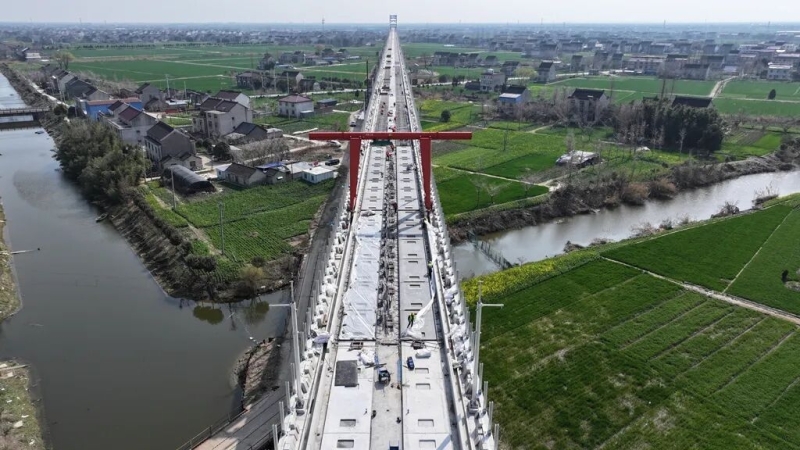 沪渝蓉高铁(北沿江高铁)泰兴段自开工以来进展顺利,目前,高铁主线桩基、承台、墩身、箱梁架设等施工已圆满完成,全面进入了无砟轨道施工阶段。预计今年下半年开始铺轨,2027年底前具备通车条件。在沪渝蓉高铁泰兴黄桥段,施工人员正在进行轨道底座板钢筋绑扎、模[详细]