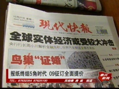 - 2008-10-28 09:41:22报纸终结5角时代 09征订全面提价