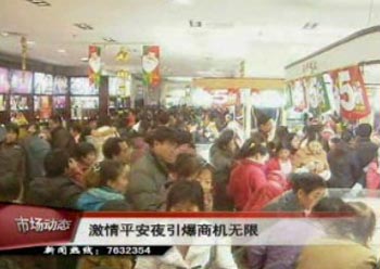 12月24日晚是西方传统的平安夜,是在家与亲人团聚的时候。而许多市民夜晚走出家门,走进商场超市,购物消费,众多商家也争相推出促销措施,赚了个盆满钵丰。 晚上7∶00左右,当记者赶...[详细]