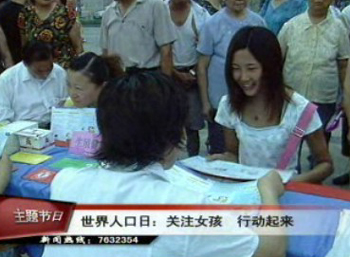 7月11日是第17个世界人口日,市计生部门在城区开展形式多样的宣传咨询活动,纪念第17个世界人口日。 上午市计生部门在鼓楼文化广场举行大型宣传咨询活动。呼吁全社会关爱女孩,关注全...[详细]
