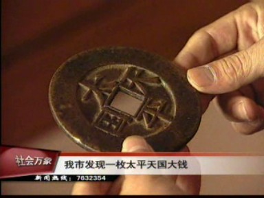 赵玉刚是一名古董收藏爱好者,近日他从大生镇一户农民家中购得一枚大型铜钱,据专家鉴定,铜钱为太平天国农民起义军铸造的大钱。 钱的正面铸有宋体"太平天国"字样,背面铸有"圣宝"...[详细]