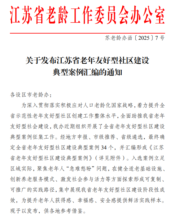 & 8203;近日省老龄工作委员会办公室发布全省老年友好型社区建设典型案例姜堰蒋垛镇蒋垛村成功入选案例简介蒋垛村是蒋垛镇集镇所在地,村内60岁以上老年人口占比达35%,独居、失能、高龄老人比例持续上升。蒋垛村以提升老年人获得感、幸福感为抓手,锚定建成宜居宜养[详细]